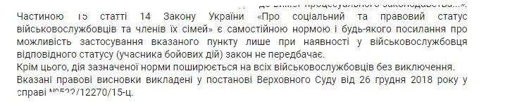 В 2025р. суди продовжували посилатися саме на неї. Порівняв...але також не побачив прямого посилання на статус УБД, "брали або беруть участь у захисті незалежності". А ось в 2025р. іншою постановою ВСУ (але інша категорія справ) зазначено,що ЗСУ та інші ВФ автоматично вважаються переведеними на воєнний стан. тобто фактично задіяні в захисті незалежності держави. Поки,що рішення виносяться на користь військових.... але... поки.. А яка постанова ВСУ,що регулює подібні правовідносини була після зазначеної мною постанови?