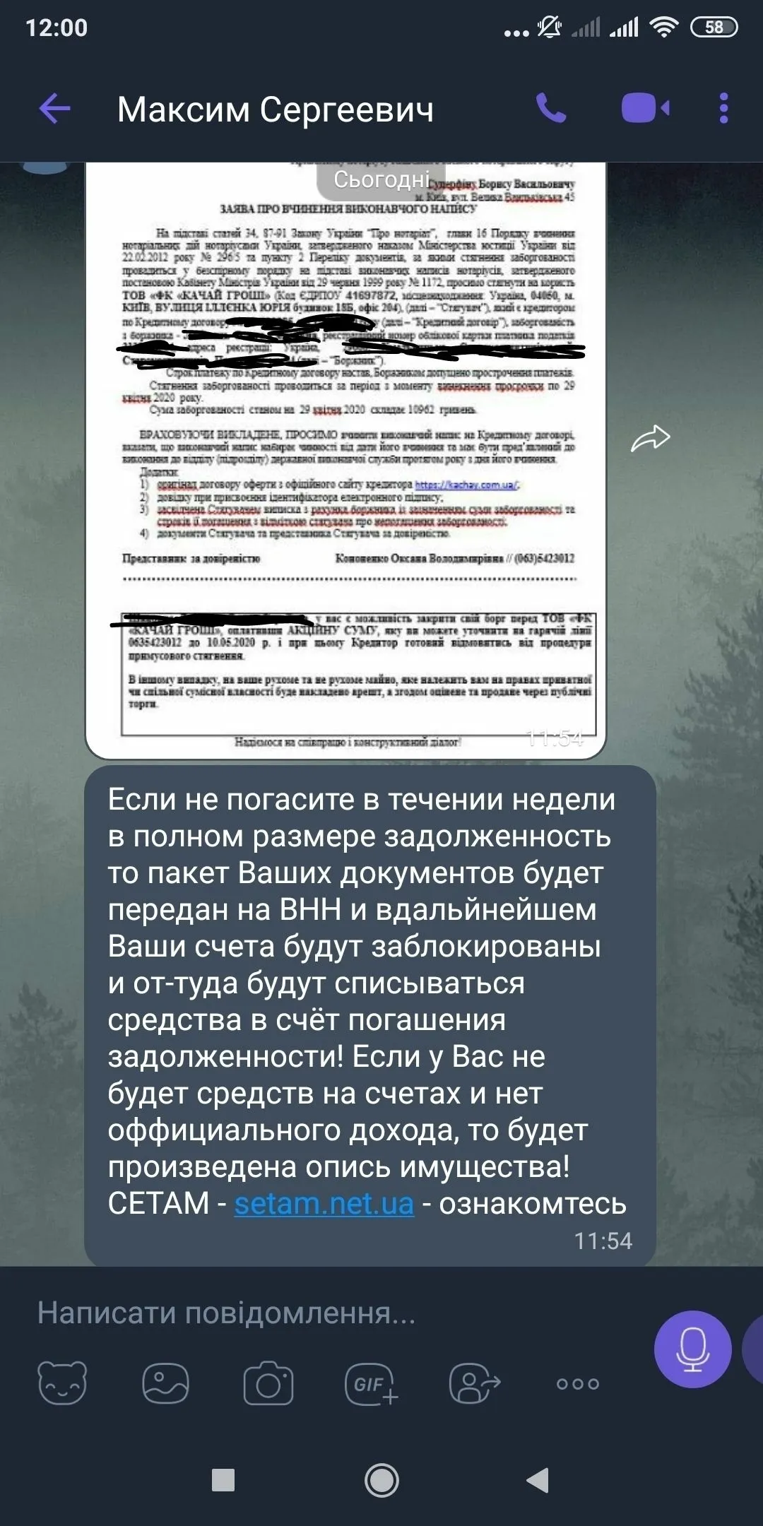 А что сказала им Ваш юрист?Мне тоже укрборг звонил на Вайбер риса, потом опять курица звонил и и писали, тоже грозил нот надписью, но моя знакома (юрис) при очередном сообщении в Вайбер рядом была вежливо так и не навязчиво рассказала ей про нот надпись и все прелести связанные с ней , тобиш как я буду решать вопрос с этой самой нот надписью, милилые беседы прекратились, только робот иногда звонил, и то уже месчц как мовсем пропали я уже пережмвать начала думала сдохли, ан нет других достают , а жаль лутше б сдохли