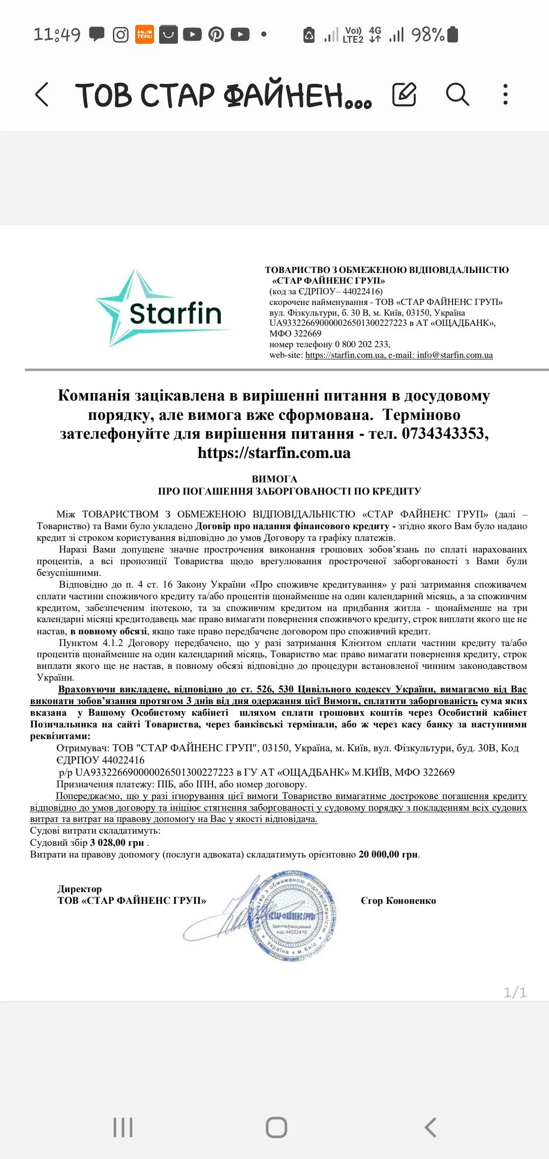 Запроплнують що старфін що сан тіло, вони тільки лякають і все...Я не сію паніку. Сама у відчаї. Але то мабуть , як хтось написав, мфошний агент. Бо в сусідньому дописі тая "звізда" вже пише, що подали до суду на 56 день протермінування. Нажаль, ці лякалки добряче по нервах б'ють