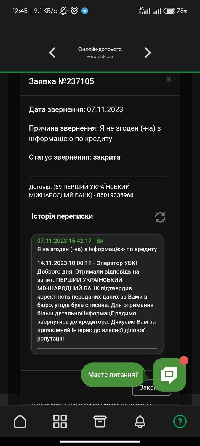 Почав оскаржувати договір в УБКІ, та надали мені відповідь що банк коректно передав данні до УБКІ.