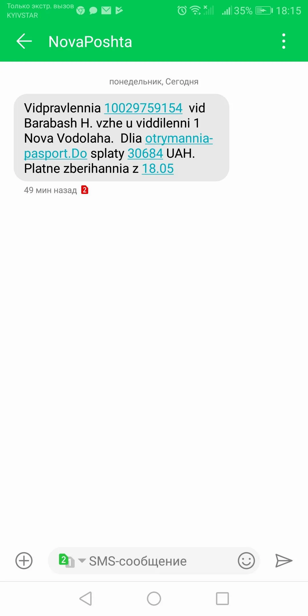 да.... мне и супруге от довира та гарантия на новую пришли посылки стоимость 60 грн. забил не забиралПришла мне такая вот смс. Ничего на такую сумму не заказывала. Неужели наши "друзi" чудят?...