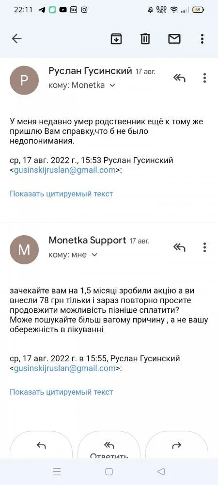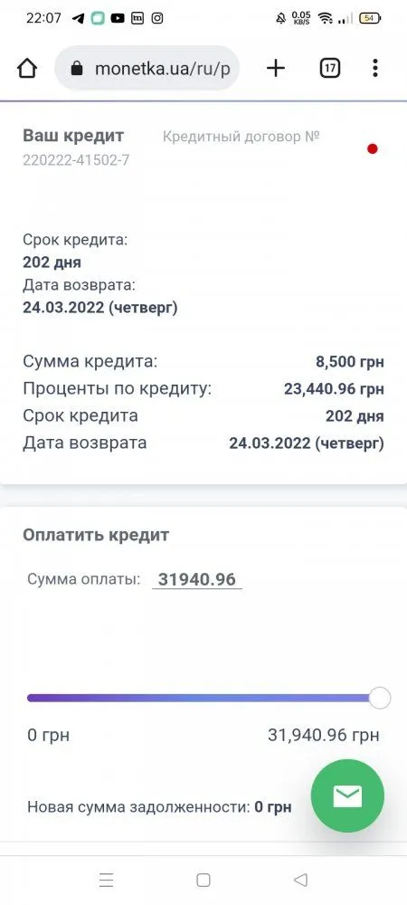 Компания,давала мне возможность закрывать частями за тело. По состоянию здоровья,не мог оплачивать продолжительное время,написал им в ответ в хамской форме сначала получил то что это такая себе причина,а потом, все ж такие попросили справку и сказали что дадут хотя бы закрыть за сентябрь. Предоставив им справку и подтверждение что был на лечении,они мне все равно нарисовали проценты. Отношение странное,тем более в такое сложное время для страны. Не отказываюсь же платить то.