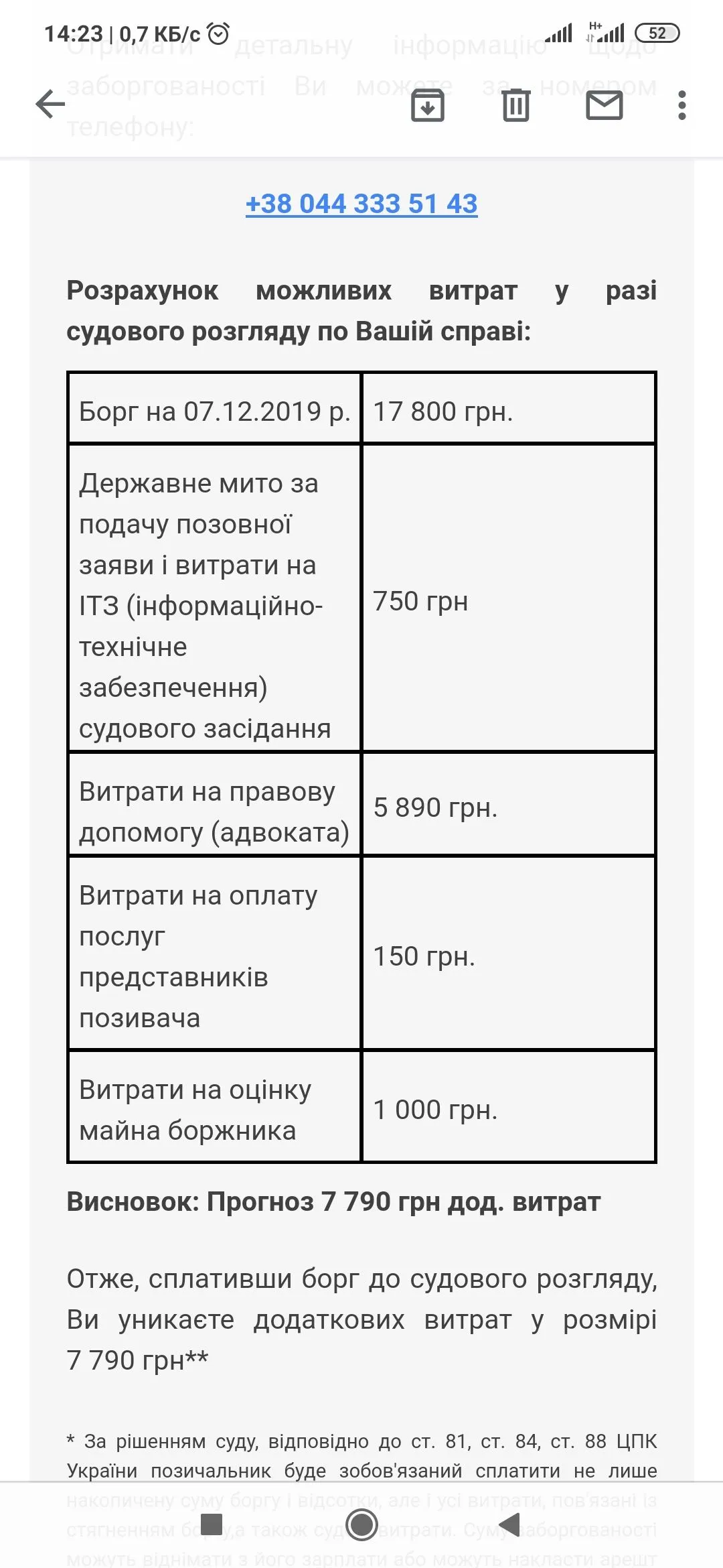 Нами готуються документи для отримання виконавчого напису нотаріуса, для позасудового стягнення заборгованості. Сума боргу складає 27916,08 грн. Для добровільного рішення сплатіть 19 541,26 грн. до 13.12. Деталі 0800215017