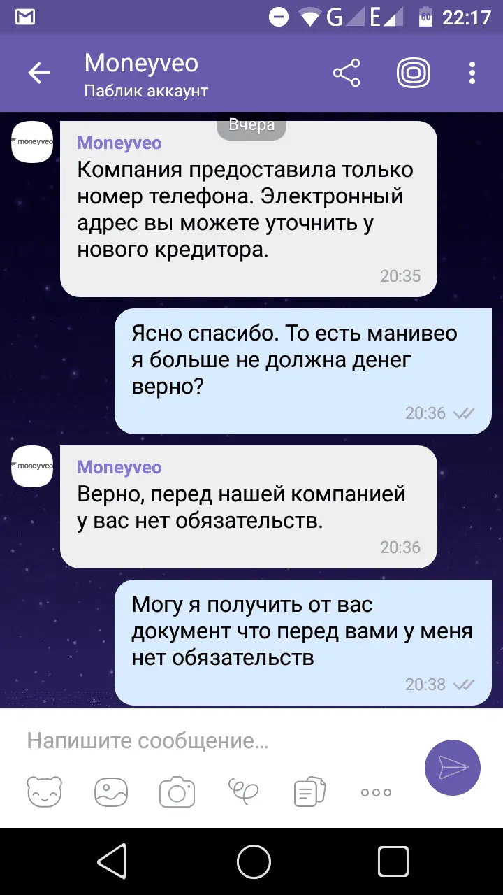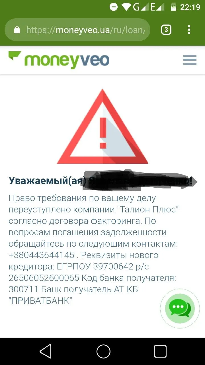 Манивео не хочет давать официальный документ, о переуступке и что я им не должна теперь. Что делать дальше, пока не знаю. Но платить "Талиону" не буду 25 тыс. (тело 7000 тыс.) в лк манивео долг растёт, вчера одна сумма сегодня другая.