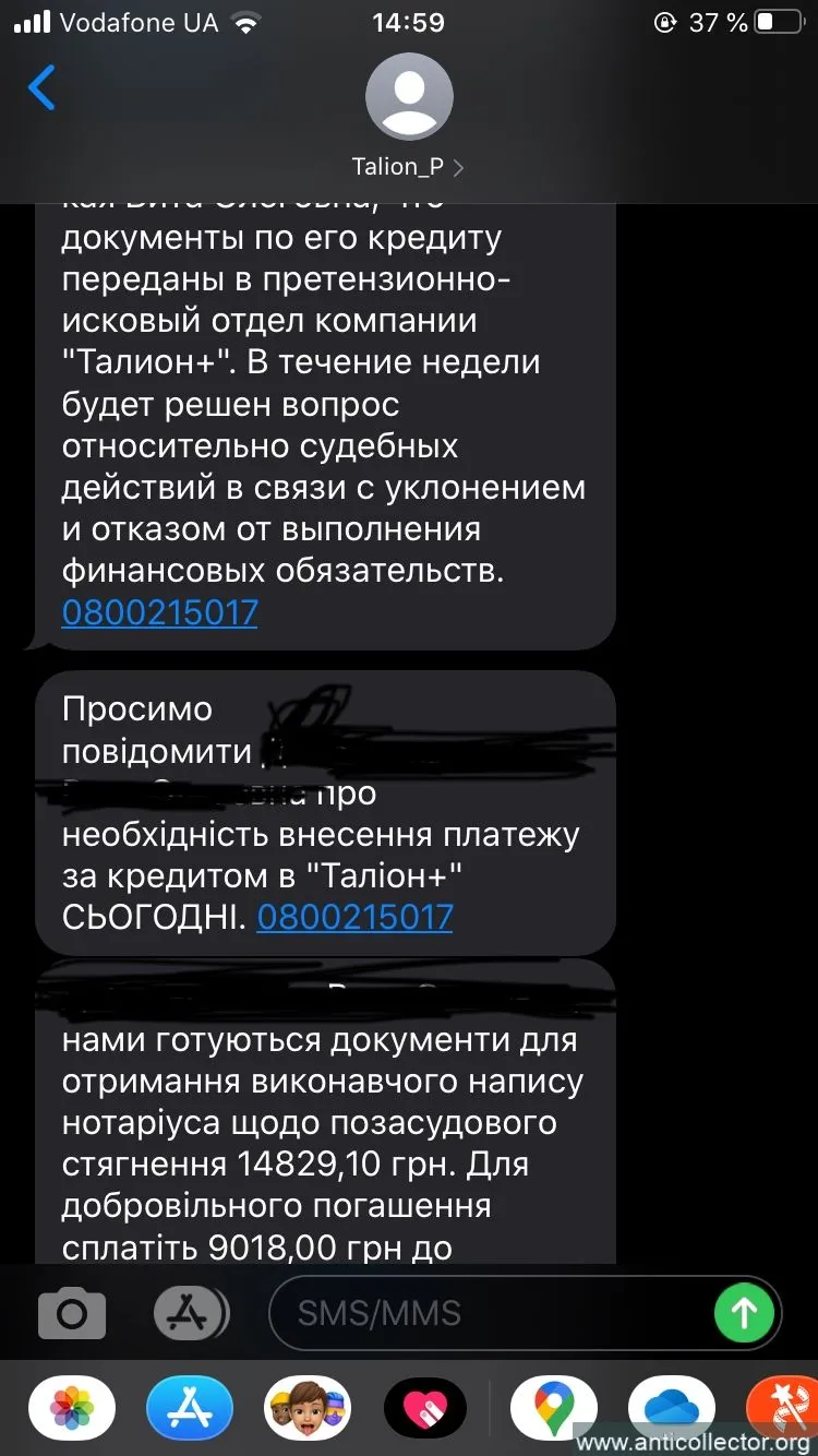 Проинформируйте ФИО, что документы по его кредиту переданы в претензионно-исковый отдел компании "Талион+". В течение недели будет решен вопрос относительно судебных действий в связи с уклонением и отказом от выполнения финансовых обязательств.