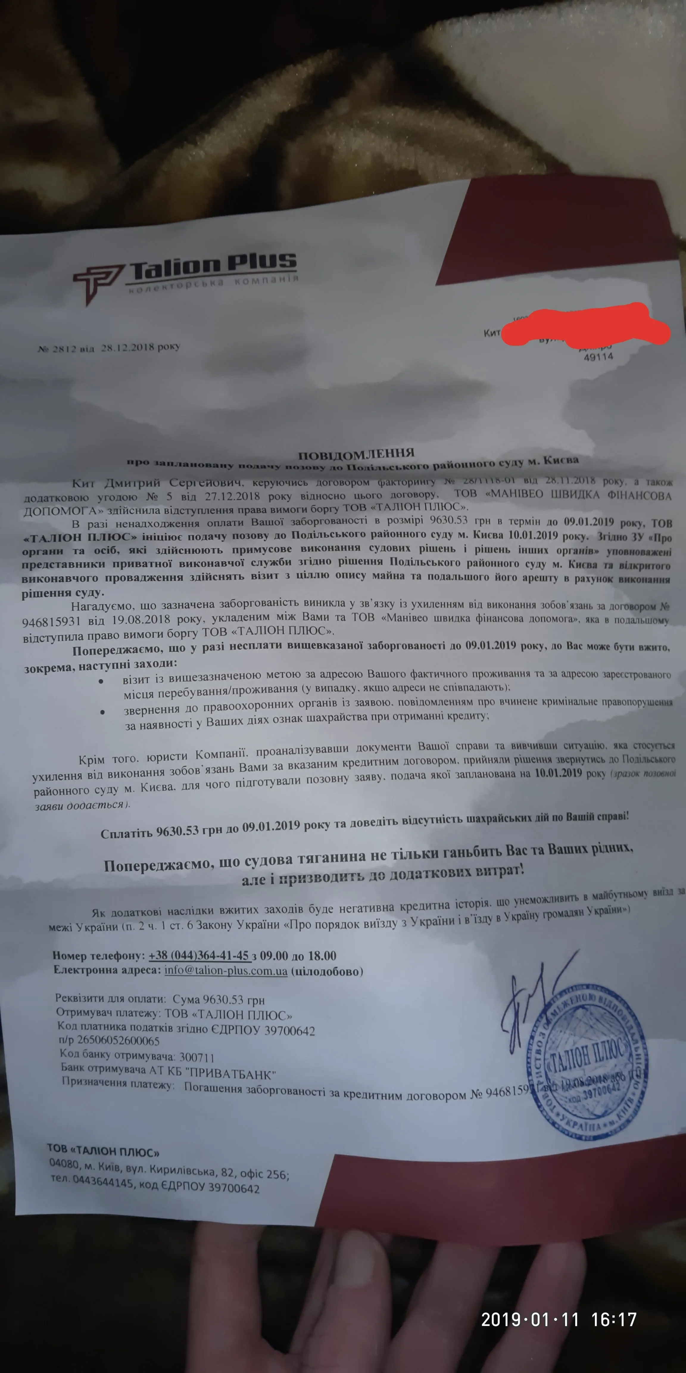 на вас талион в суд подал?Пришло письмо от тарилона 3 шт, тип в суд приехать , потом что продали кредит тарилону , и что делать?