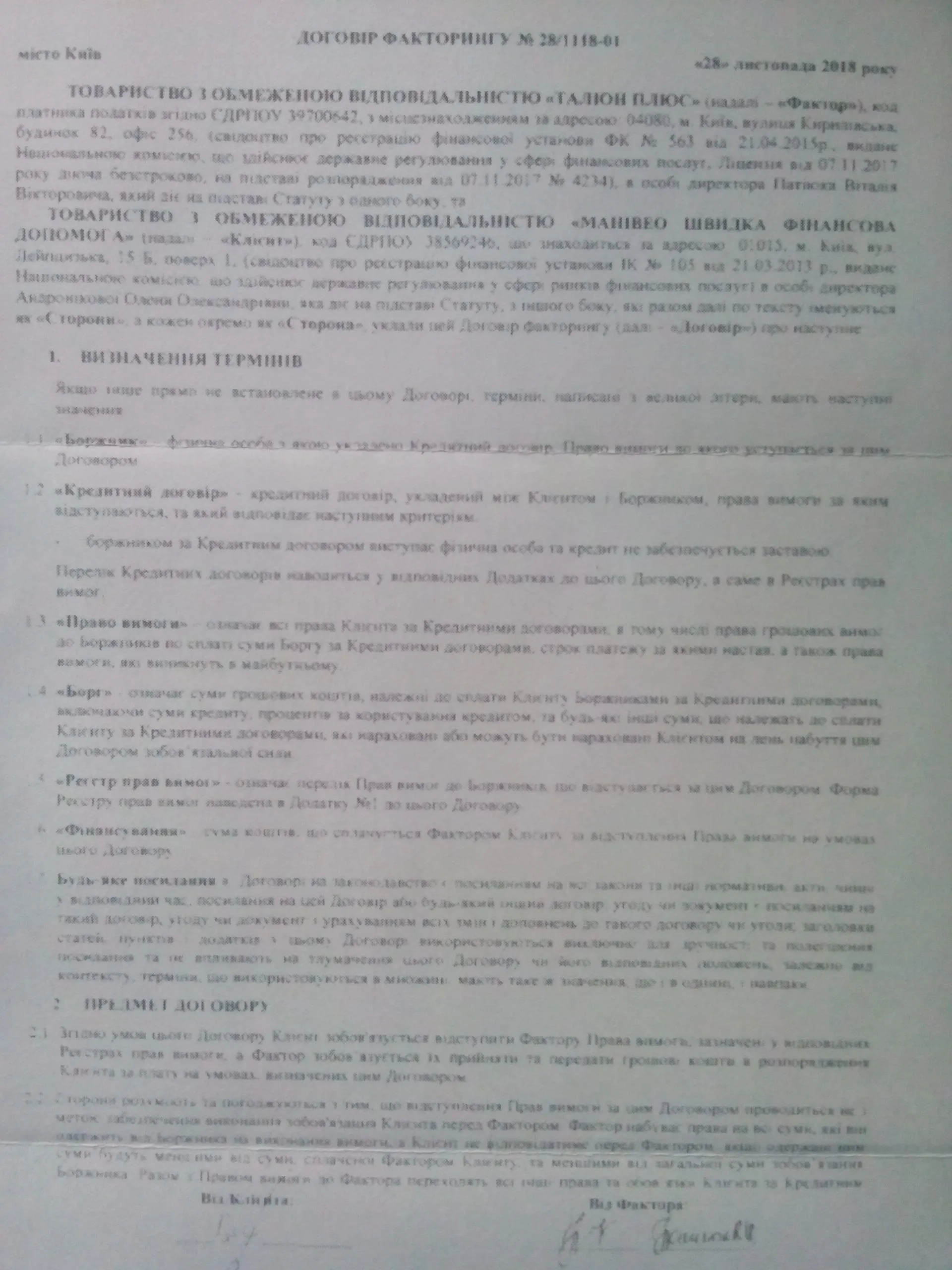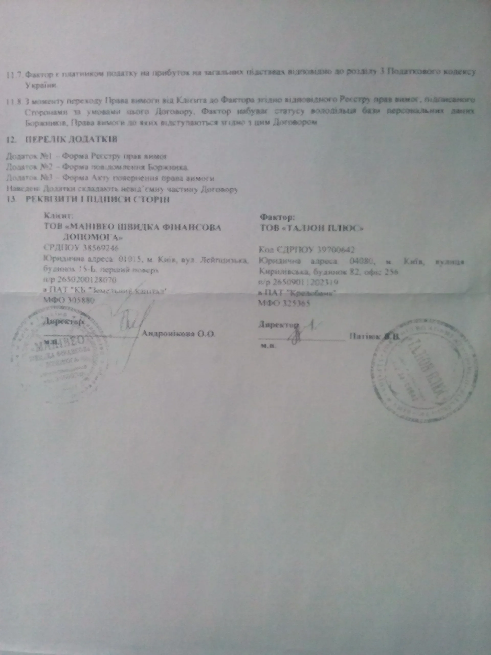 Я, ПРІЗВИЩЕ ІМЯ ПОБАТЬКОВІ, маю діючий кредитний договір з Товариства з обмеженою відповідальністю “МАНІВЕО ШВИДКА ФІНАНСОВА ДОПОМОГА.