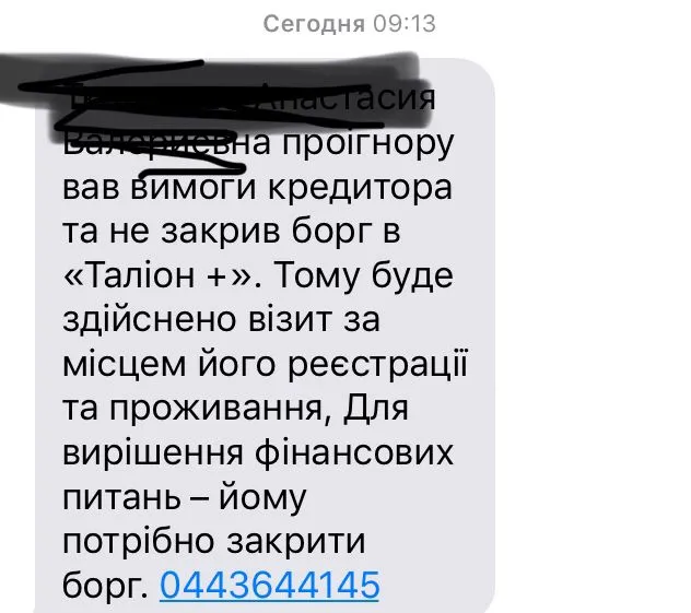 Звоню на их Киевский ,спрашиваю когда то мне чайник ставить?А они мне какой чайник.Ну вы же шлете мне смс о том,что я вам должна,что не отдаю долги,о том что в гости приедите.говорю где договор о переуступке?а они мы выслали,говорю не получала.Ну на этом разговор и закончился.Сказали мне перезвонят,вот сижу жду