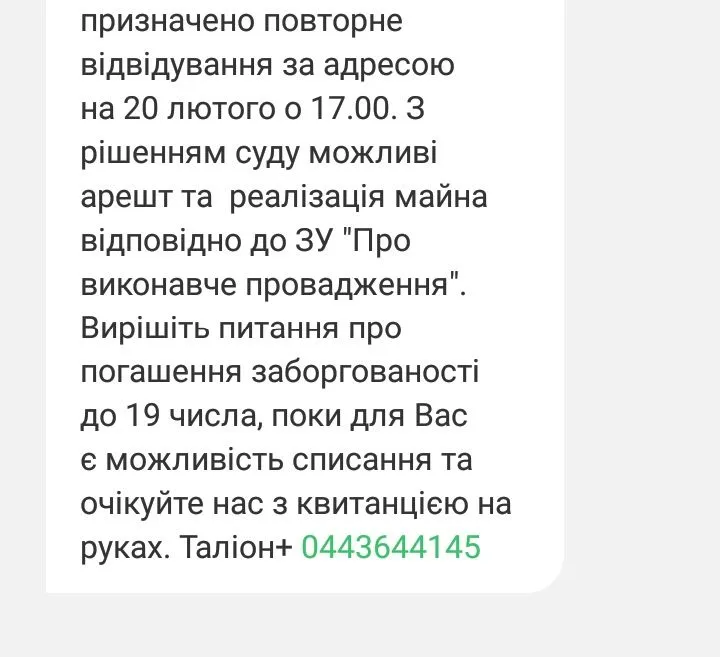 Так же получил письмо с желанием приехать ко мне повторно по решению суда 20го в 17.00. Собственно угрозы конёк всех калов. Уже в моньке начинали пугать на тему типа, а не боюсь ли я, что кто то из моих с лестницы упадёт. После предложения пойти на 3 буквы и встретится в суде с записью этого разговора, замолчали. После этого неделя тишины и смс от талька, вы теперь наши. Тоже начали с угроз, звонили по много, и родственников пугали, но к счастью они понимают что это за люди и на понт внимания не обращали. Сначала присылали отдать всю сумму или будут последствия. Далее несколько смс с подписанным маршрутным листом, потом попрашайка отдать пол суммы, опять пару жди меня, опять попрашайка но отдать четверть суммы. Далее смс про відкрите кримінальне провадження по моїй справі за статтею 190 кку. Которая говорит про заволодіння чужим майном за шахрайськіми методами. Ну даже если и так, причем тут криминал? Кредит это гражданско правовые отношения. Криминал это если оформлено по левым документам.