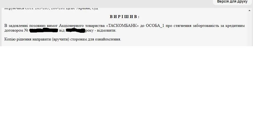 АТ «ТАСКОМБАНК» підготував для Вас пропозицію щодо врегулювання кредитної заборгованості за договором №