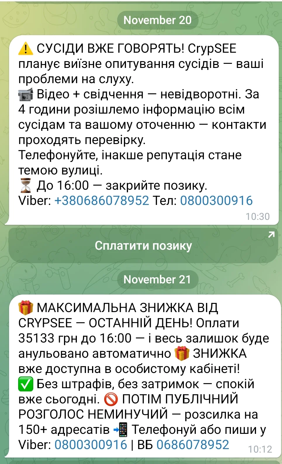 ADmd, як вони можуть створить нову позику? якщо для переводу грошей потрібно підтвердження смс повідомлення? потім перевод коштів з криптогаманця на свою карту??????? скажіть будь-ласка? а краще щоб ваші фото вивішували на всіх сторінках фейсбуку. вайберу та инстаграм? щоб на вас створювали коллажі пopнo змісту? терроризували людей які не винні в тому що ми хворі люди понабирали кучу займів і думаємо що Святий Миколай за нас їх віддасть? Ні, я так не хочу...мені шкода моїх батьків та друзів........я сама виходжу на контакт з ними , спілкуюсь і все вирішується спокійно.......але ви робіть як хочете......я просто написала допис, може комусь знадобиться