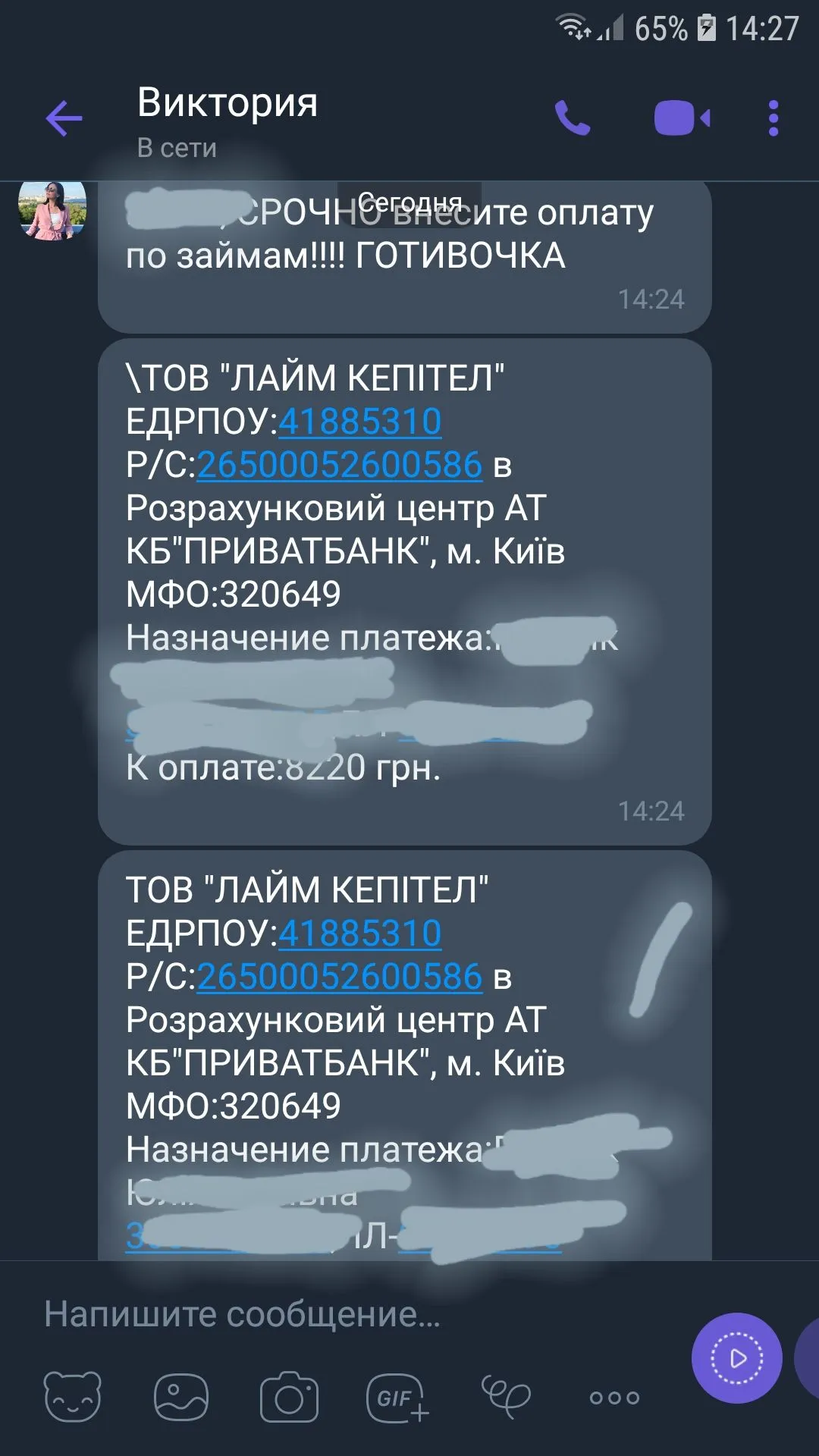 Я ЇЙ У ВІДПОВІДЬ НАПИСАЛА:Мені на вайбер прислали ось такі смс...