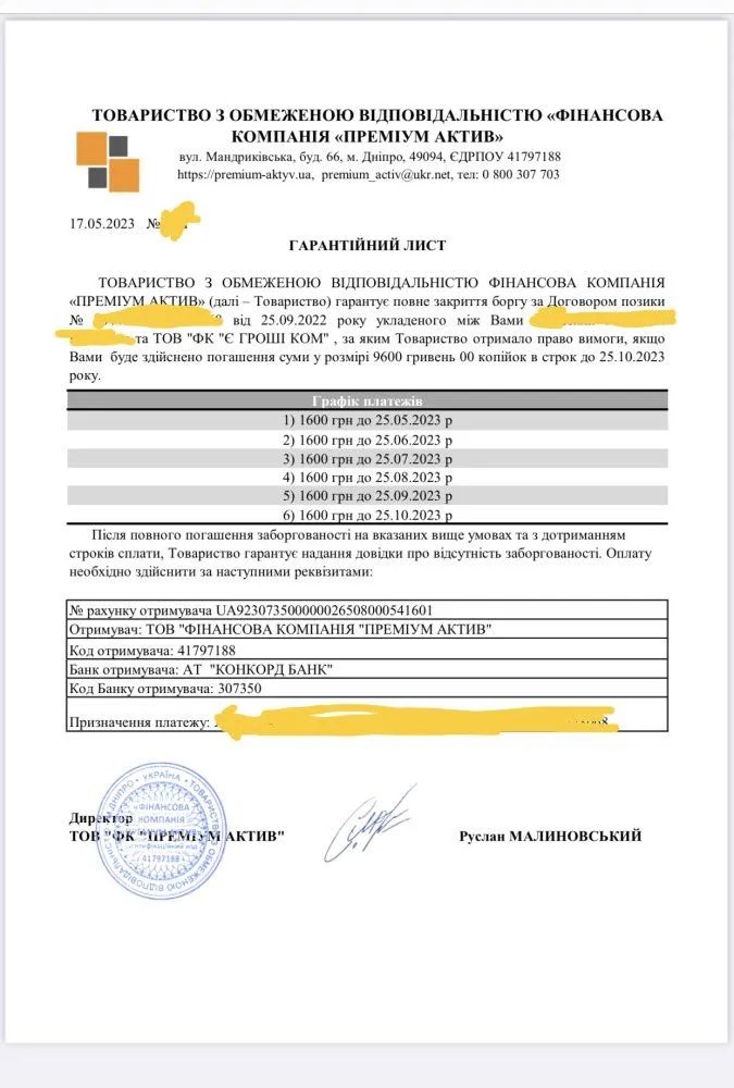 А скільки у вас просрочка що запропонували такі умови?Запропонували тіло розбити на 10 платежів. Підскажіть чи правильний гарантійний лист