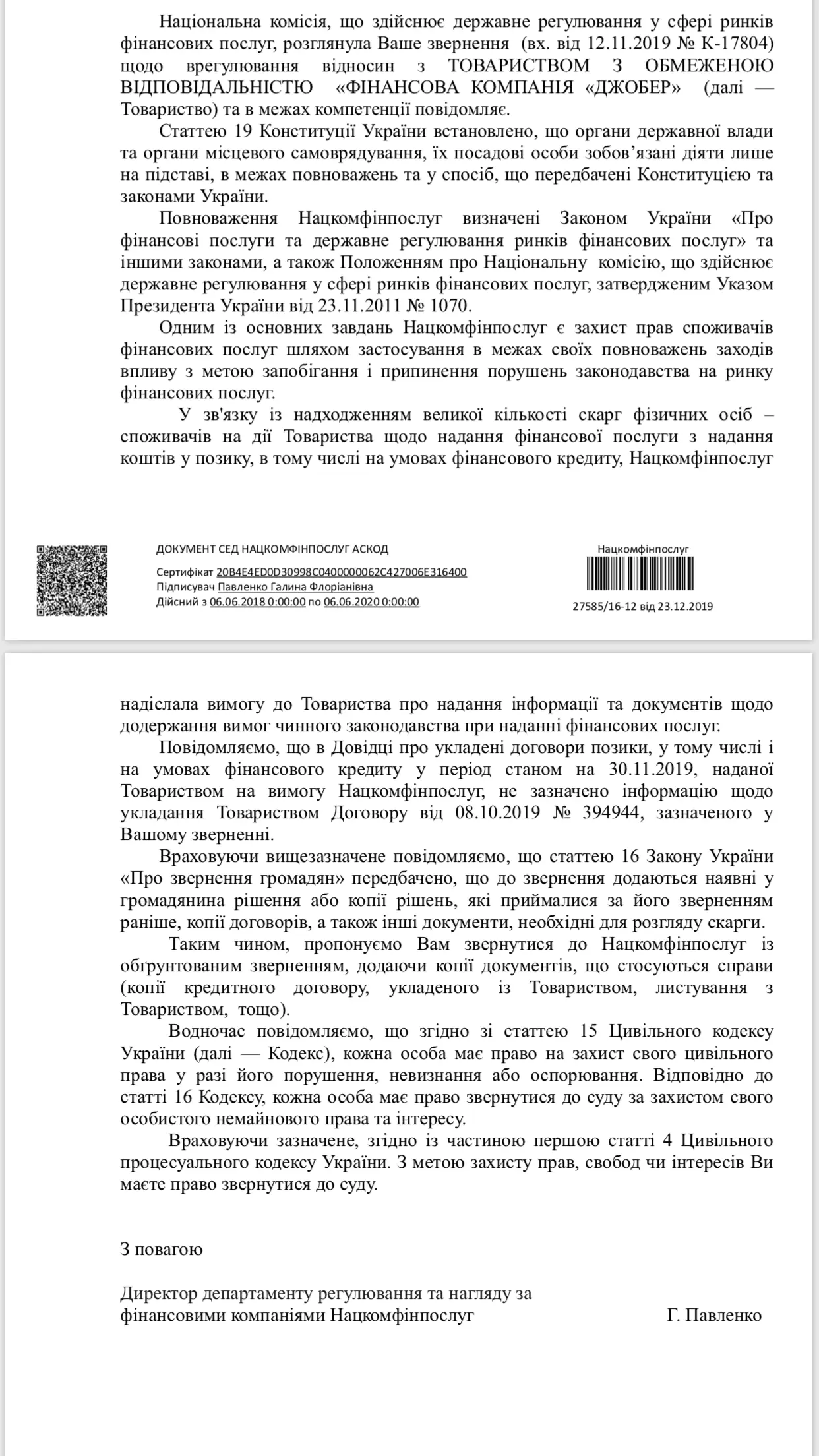 Не могу понять ответ от нацкома типо нет договора?
