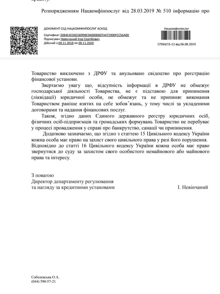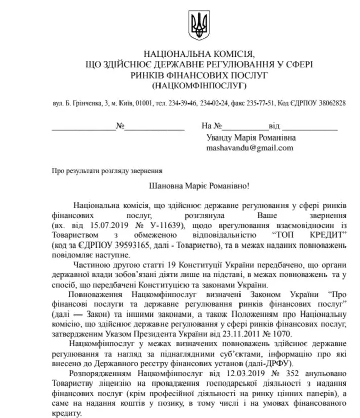 Прийшло рішення від нацкому ,топ кредит позбавлений ліцензії із 12.03.2019 та не має права видавати кредитиМене ТопКредит погрожує продати... що робити і кому вони можуть продати?