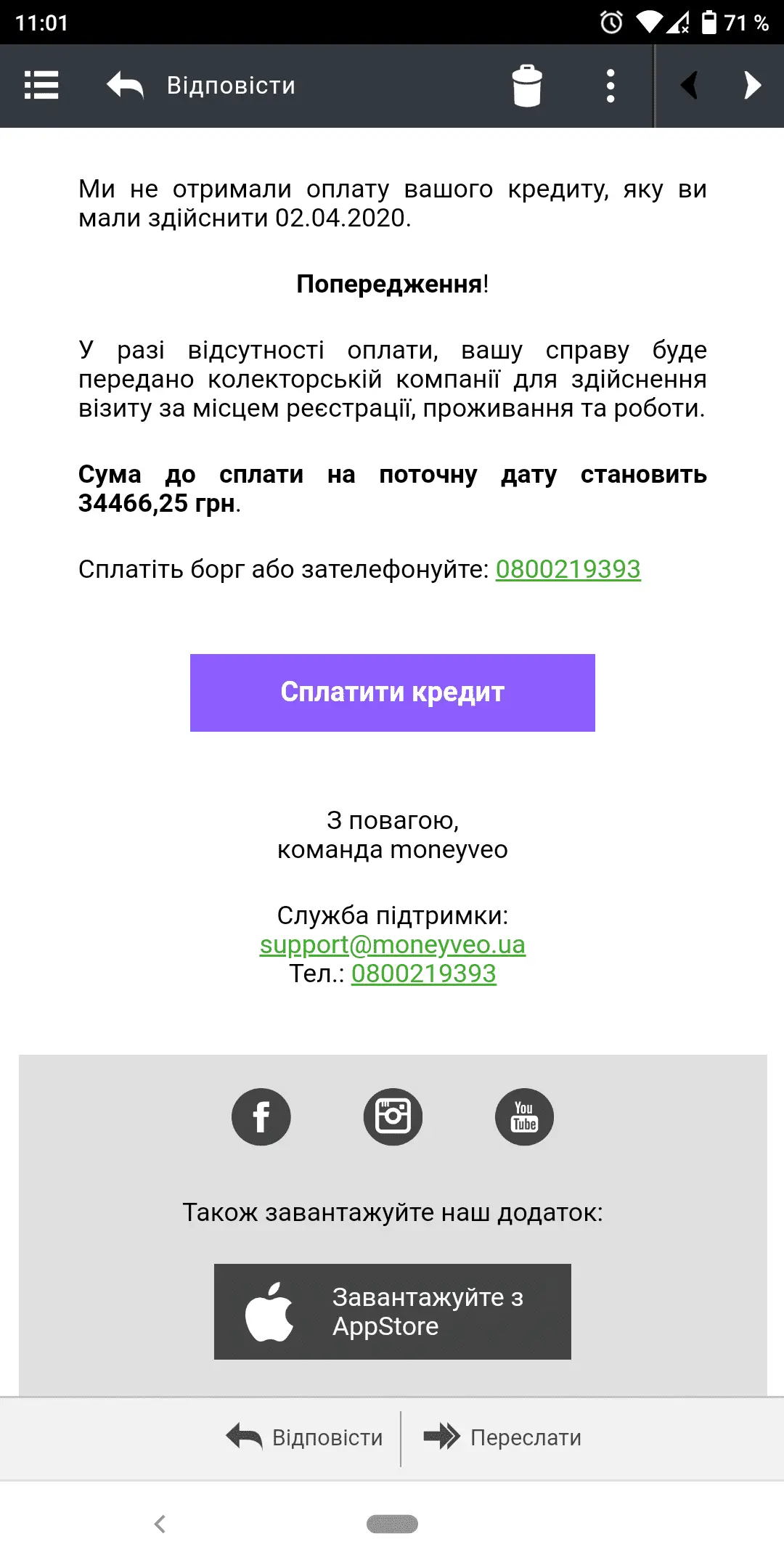 Користувалась рік послугами їхніми,останій раз взяла 12000,карантин.Один місяць проплатила,а зараз з 9.03 .не плочу ,вже 21000.Звонять,смс,вайбер,і суд і шо закриють на 72 години.Кажу дайте канікули,потом заплочу,нема зараз.А їм як солов'ю!!!!!Віддай зараз і всьо.