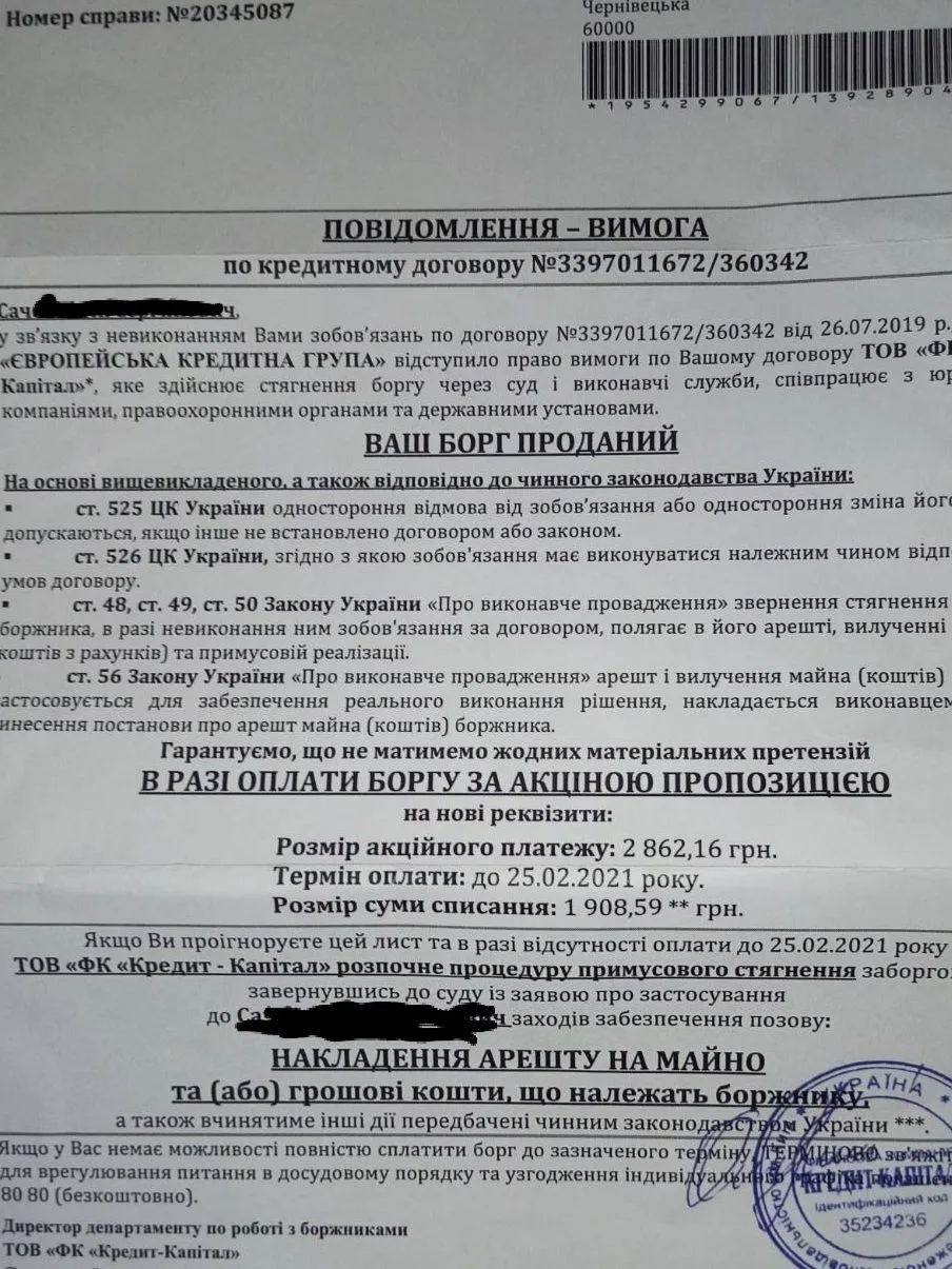 Здравствуйте, может кто-то уже сталкивался с такой проблемой. Милан продал долг в кредит капитал, и они постоянно шлют смс и письма с угрозами арестовать счета. Как поступить правильно в этой ситуации?