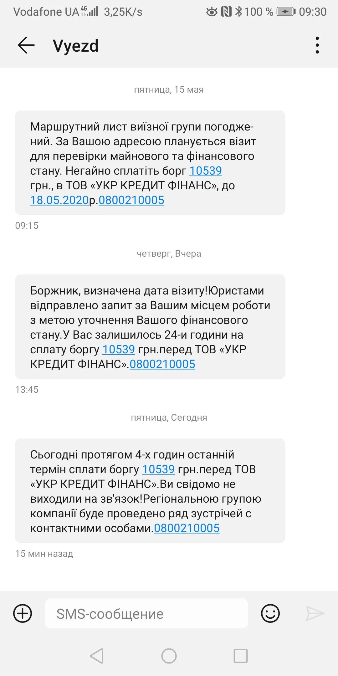 Мне,сегодня,"Швидко гроши",написали в смс: "Очікуйте візит інспекторів".