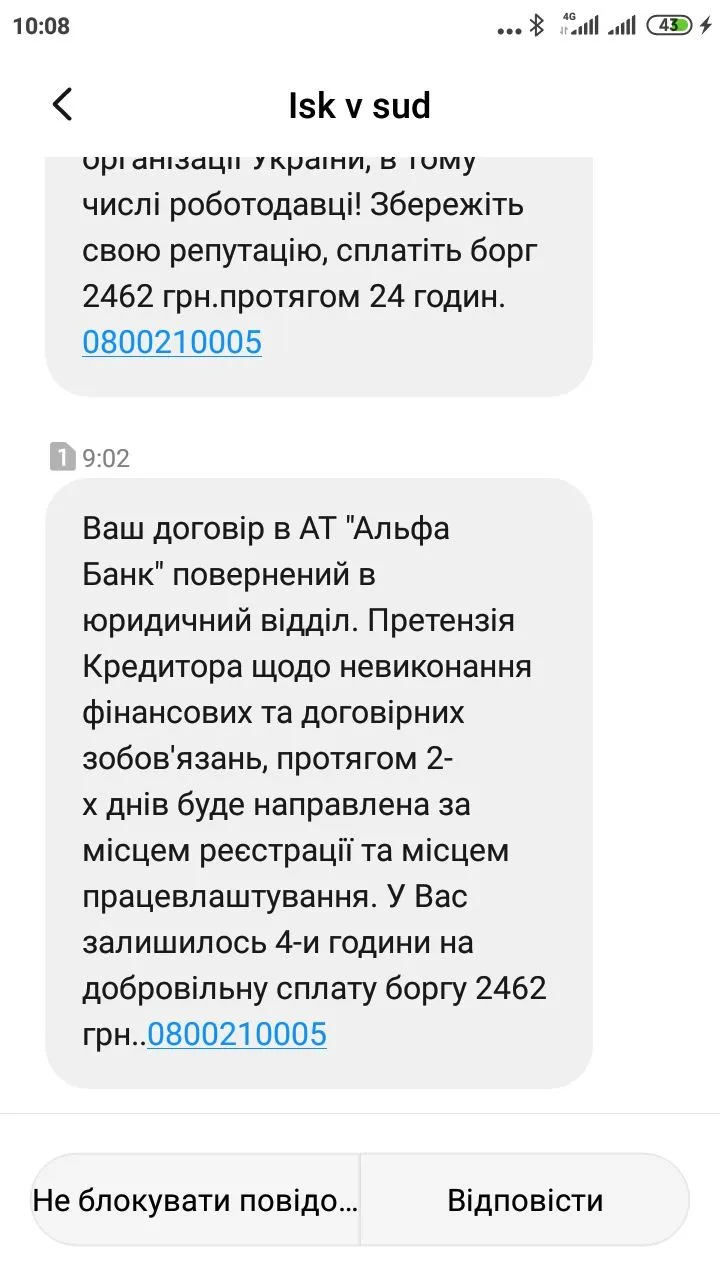 А какой у Вас общий долг?Снова пришло смс. Незнаю может позвонить узнать чего хотят. Хотя денег нет нечем платить