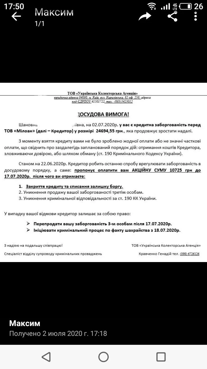 а через пару дней прийдет типа "вас небыло дома ,составили протокол"и все.Переглянути вкладення 56785А меня уже передали Кредит Лайт им? вот сегодня пришло, хотя вообще за местом регистрации не живу 6 летПереглянути вкладення 56785