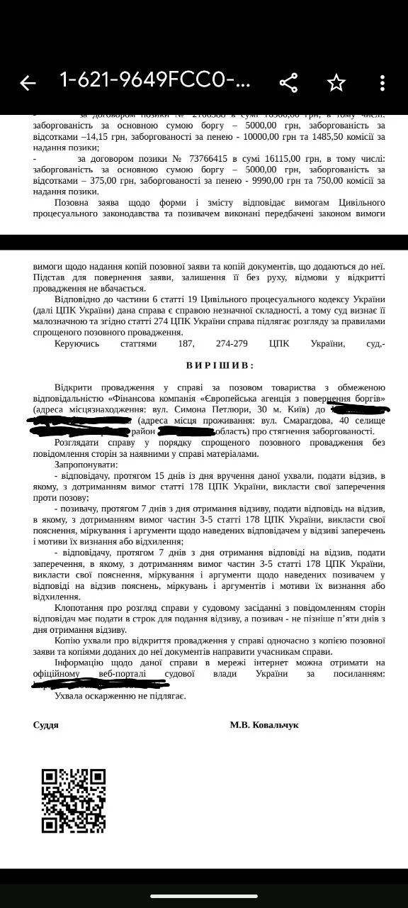 Саме зараз, відбувся п****ць у житті (в моїх очах), адже прокинувшись побачив повідомлення з додатку ДІЯ та побачив, що це позов до суду від ТОВ "Фінансова компанія "Європейська агенція з повернення боргів", я ЗДИВУВАВСЯ, впав у ліжко та досить серйозно проревівся, бо думки, що це кінець мого життя не покидали мою голову. Взявши себе в руки, знайшовши останні залишки сил в собі, вспомнивши про цей чудо форум, поспішив сюди.