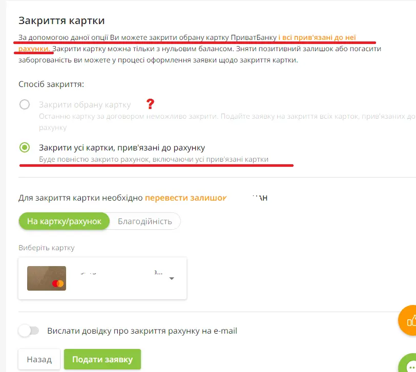 кстати столкнулся с приколом. через приват24 при попытке закрыть карту пишет как на скрине, не даёт закрыть одну карту. может у всех по-разному в зависимости от набора карт, но тем не менее..