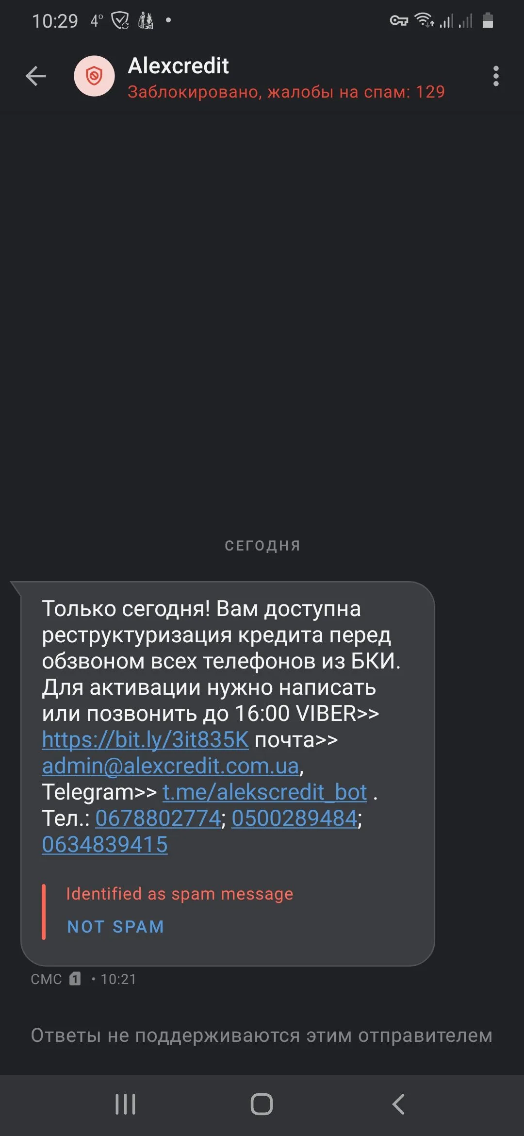 Всем добрый день Что бы это значило /Только сегодня Вам доступно ежемесячное погашение перед обзвоном всех телефонов из БКИ Алескредит За ранее благо