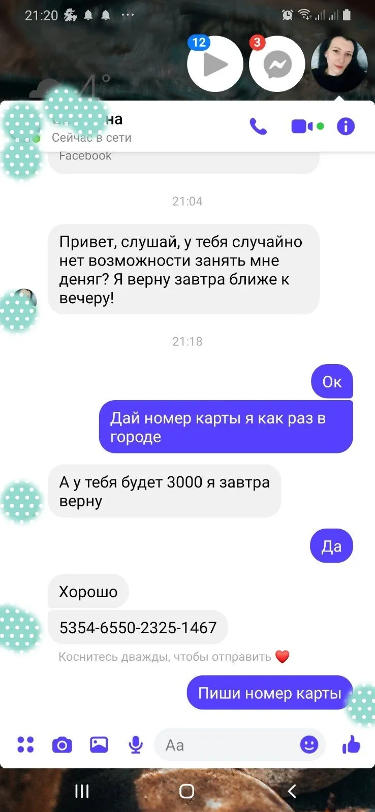 Вчера получила в вайбер сообщение. Дай номер карты. От знакомой. Посмеялась и отписала что я не против. Но не до смеха было когда она перезвонила и сказала что я ж сама в ФБ просила одолжить. Тут и началось. Оказывается взломали страничку через почту. Пока восстанавливала муж с ними переписывался. Взяли номер карты куда пересылать деньги. А деньги просили на один день по 3-4 тис. Хорошо что быстро узнали и заблокировали. Сегодня хочу написать заявление. Куда и как лучше? Может кто-то стыкался с этим. По карте банка ж можно найти кто это был. Пол ночи друзьям отвечала что это не я.