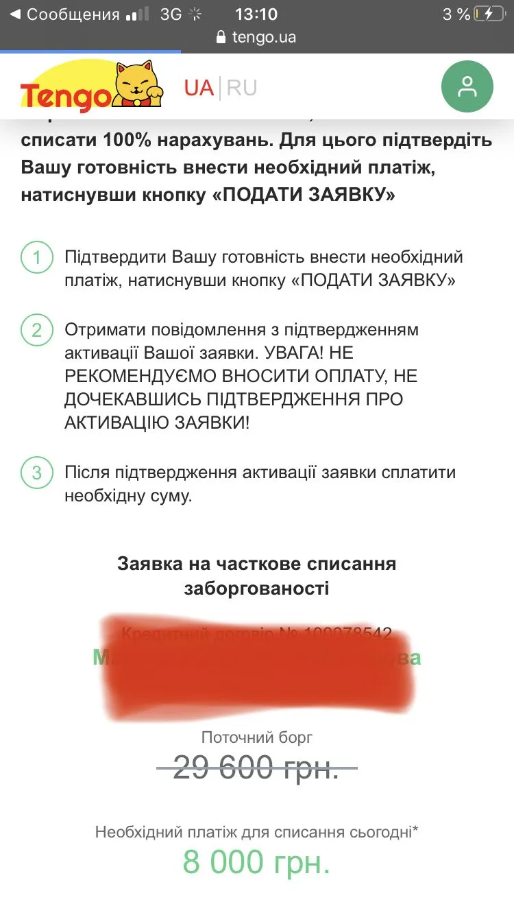затрите личные данные и номер договора)