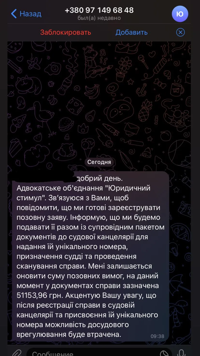 Вчора додумалась моя голова дурна їм зателефонувати, якась Зухра навіть слова не дала мені сказати, одразу почала казати що до 13:00 повинна бути внесена оплата, в розмірі 51 тисяча