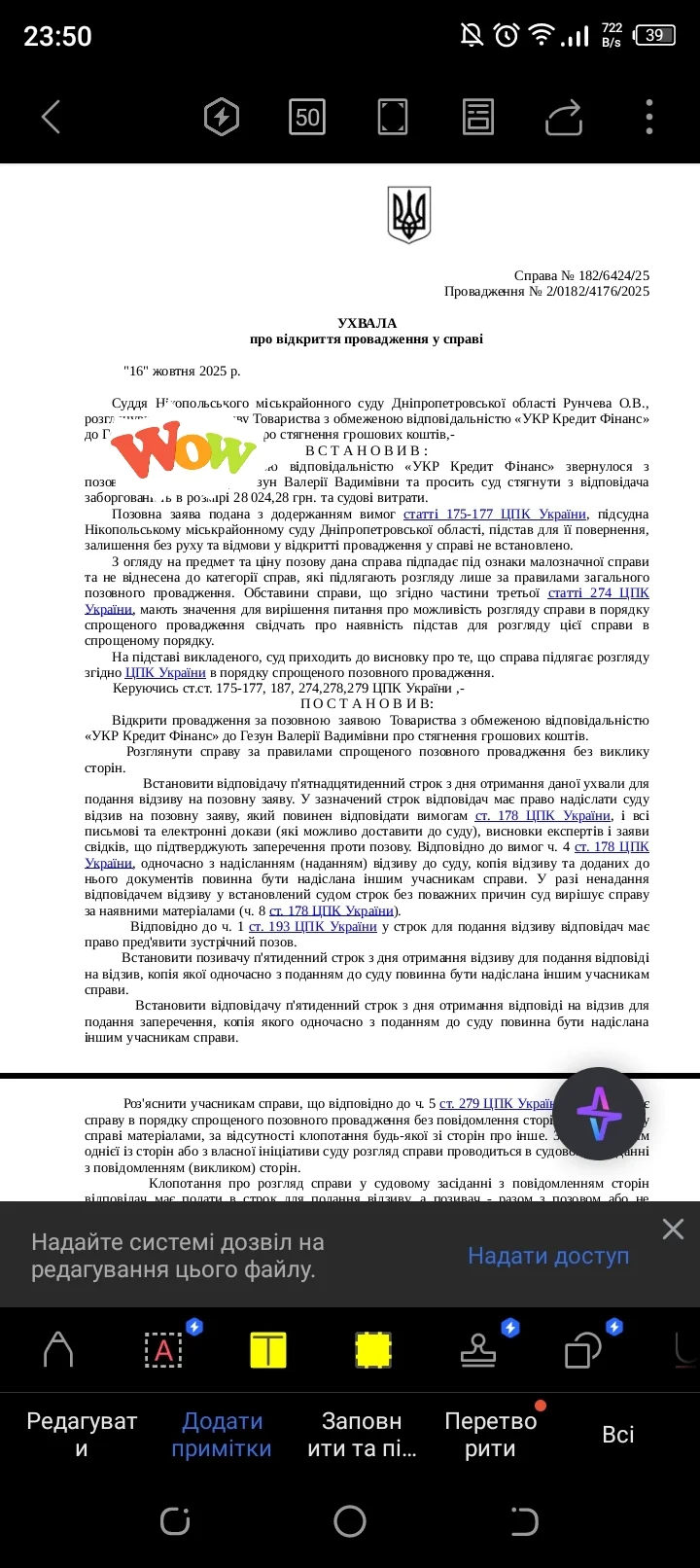 Побачила таке в дії. Перше: не було повідомлення ніякого про це; друге: 28к, які вони хочуть, це занадто, бо вже раз було оплачено 15к. Треба допомога у написанні відзиву на позовну заяву.