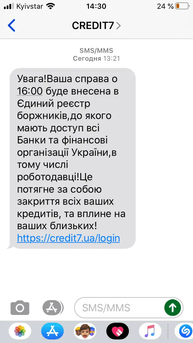 А сколько брали?Ни куда не подают пока)) меня каждый день пугают смс)) поначалу в Вайбере пугали,даж коллаж сделали) сейчас молчат. Третий месяц не плачу