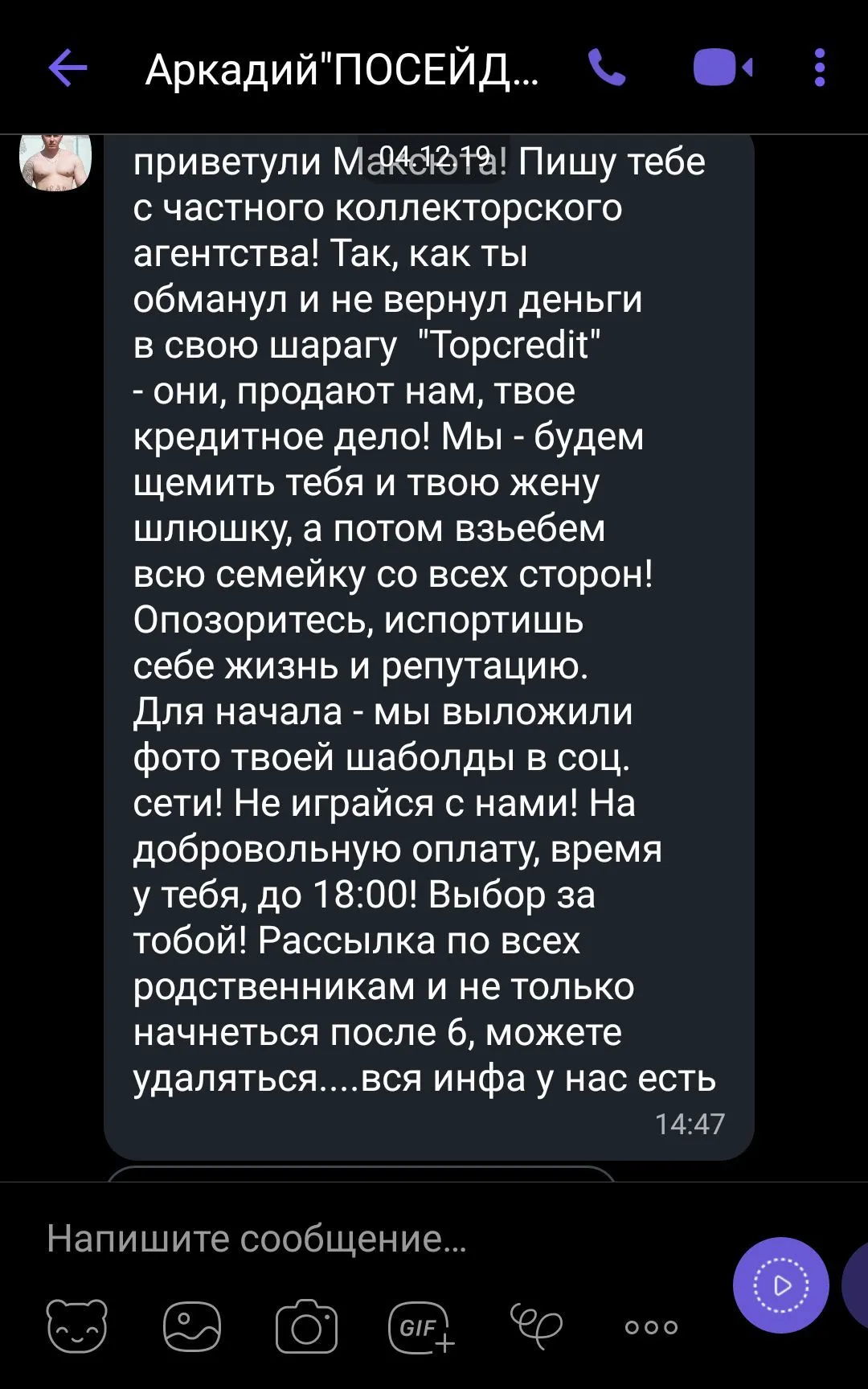 так эта контора и прислала сообщение, они сами спалилисьДа, могут заставить понервничать. Поднять хай среди соседей и близких. Мой вам совет - обращайтесь в полиция, звоните на 1545. сделайте заявление в киберполицию с вложением всех файлов. Пишите не на этих чмошников, а на контору.