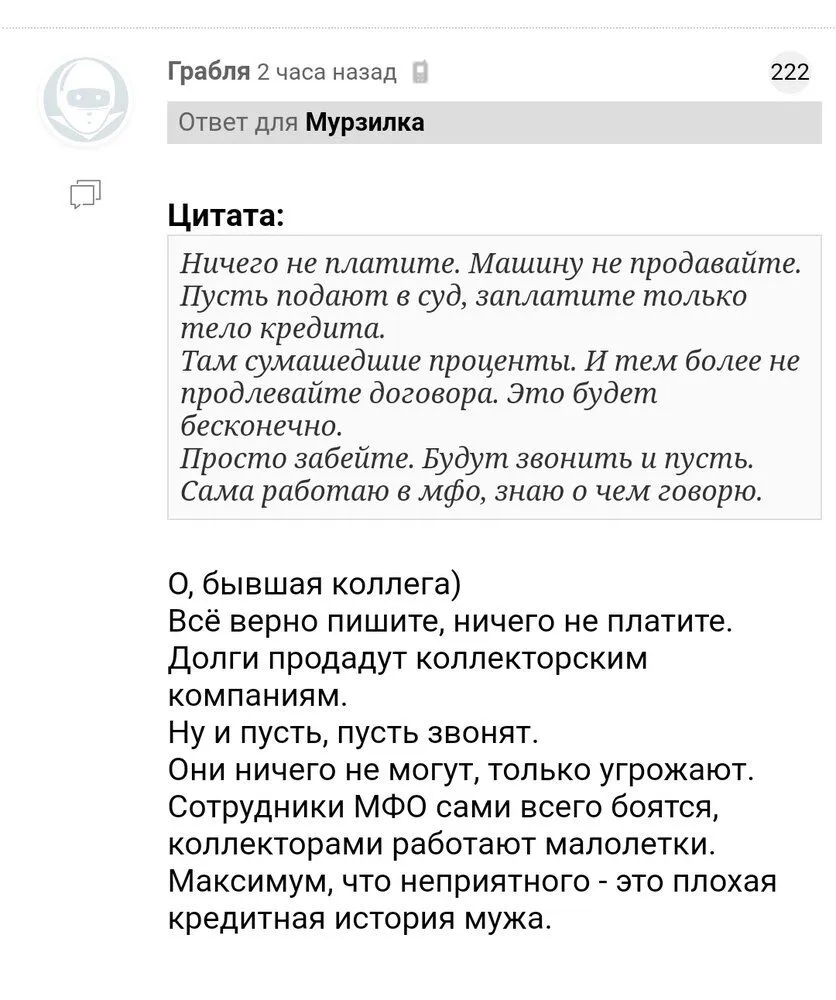 Мне тоже страшно 42 мфо, у мужа чуть меньше ни с кем не общаемся, берём себя в руки, ну соседям уже некоторым дозвонились, пока вроде норм, незнаю как дальше , месяца нет просрочки, надо держаться , не переживайте, это всё временно, ну такая полоса у нас сейчас, мы ближайшие пол года , даже тело не сможем отдавать, людям очень много должны, паника самый плохой советчик, все будет хорошо, вырабатывание свою стратегию и в бой?