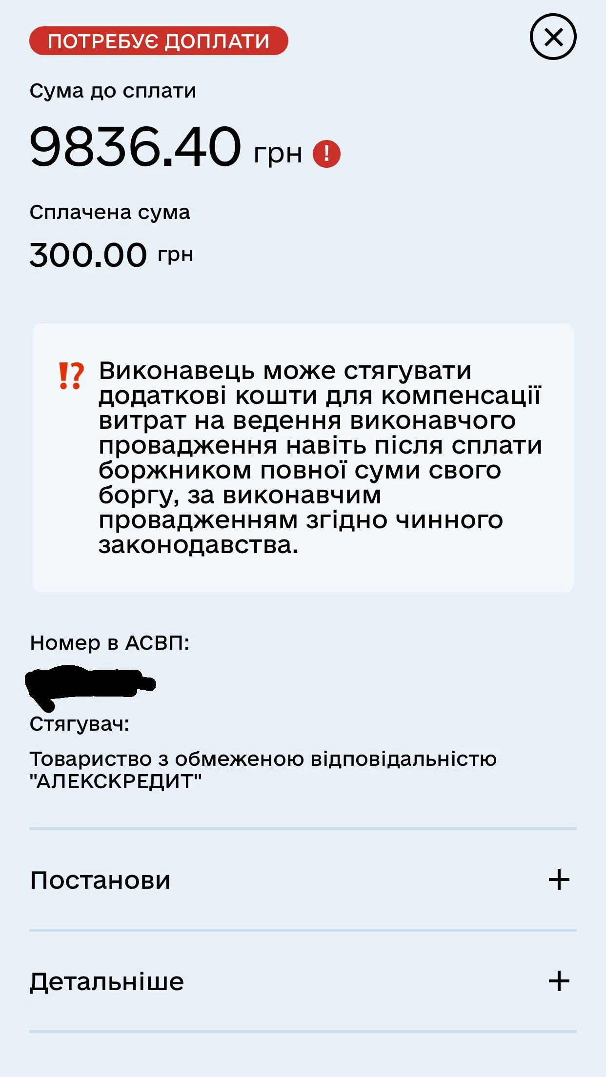 Виконавче провадження Алекс кредит