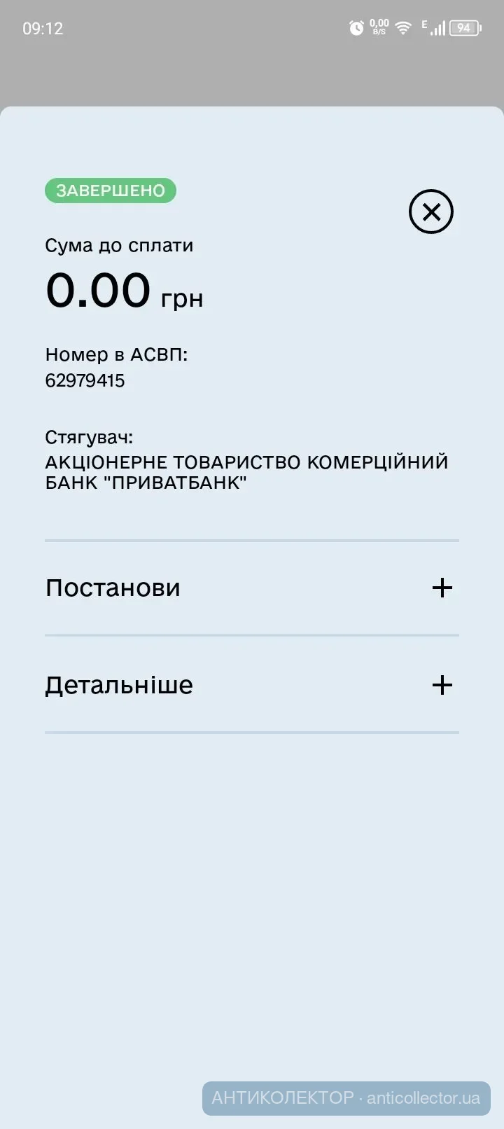 І якщо користуєтесь тільки дією ,то там повинна з'явитись постанова про закриття виконавчого