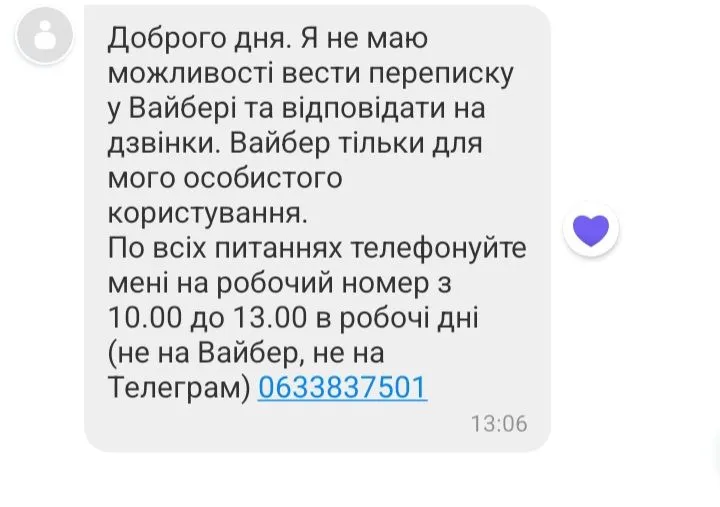 Напишіть, мені будь ласка, чи дозвонитесь. Дуже дякую за відповідь.Є у мене зупинене виконавче у цього виконавця. Я йому писала, дзвонила, на пошту писала- глухо))Сьогодні у вайбер написала і отримала ось таку відповідь