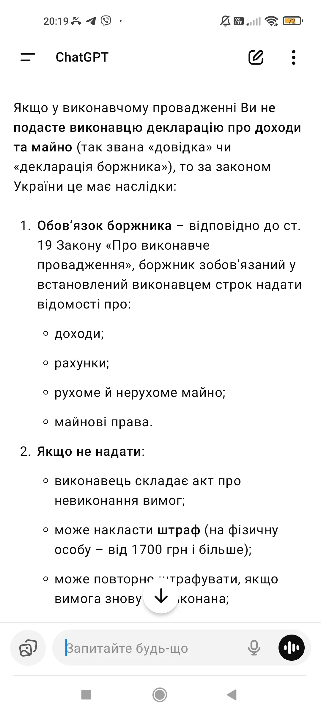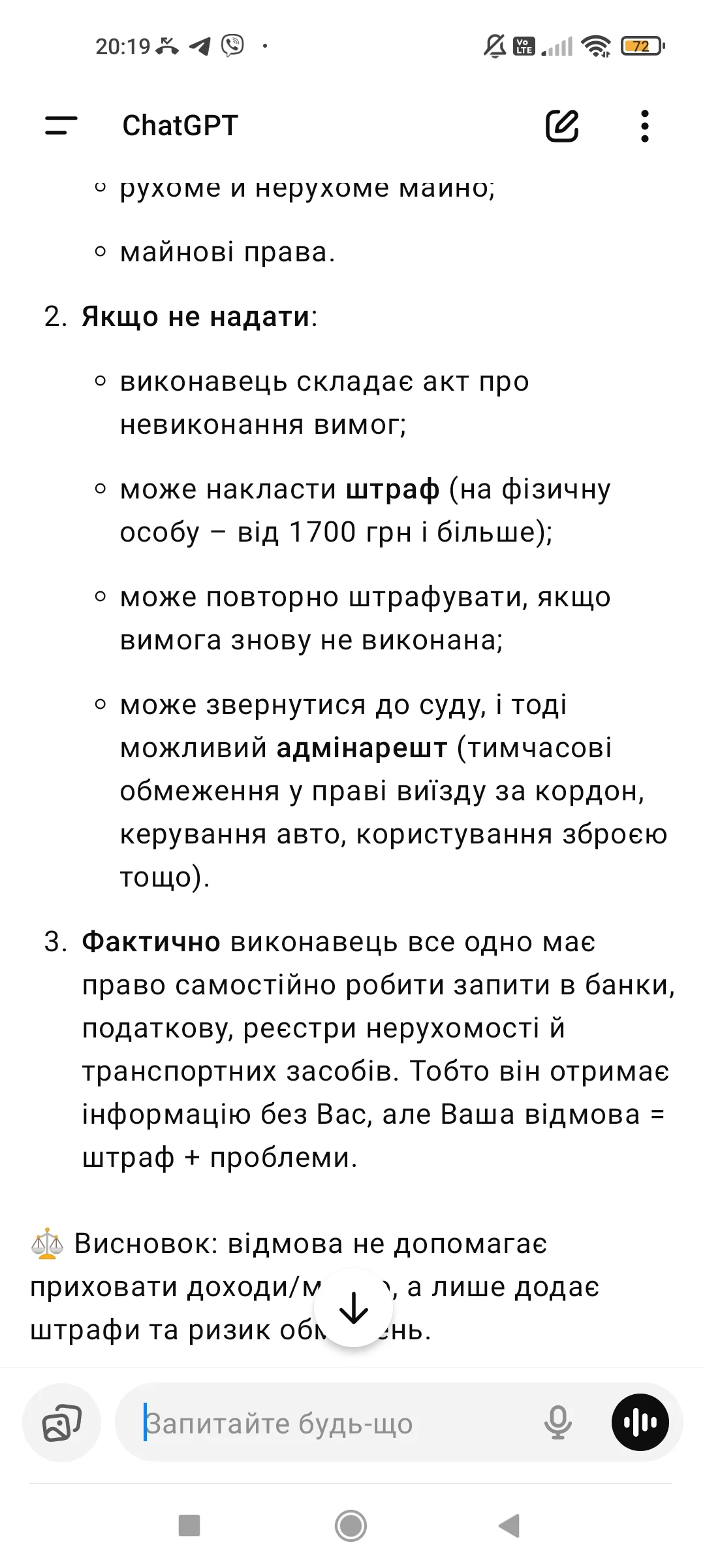 Це яке цеМені в листі він написав що якщо не буду надавати документи то буде для мене законне покарання![]()