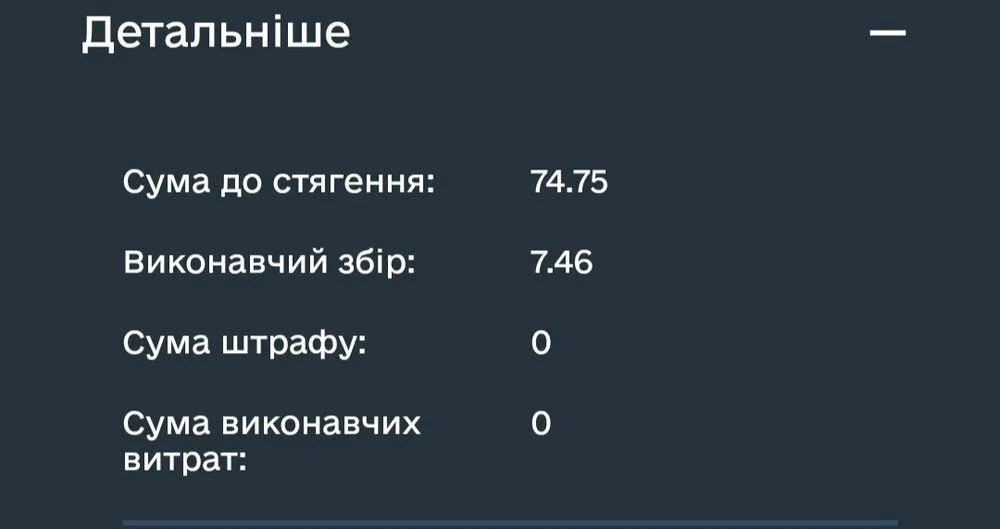 По скрину видна недоплата в 74+ гривен, и 10% исполнительного сбора!