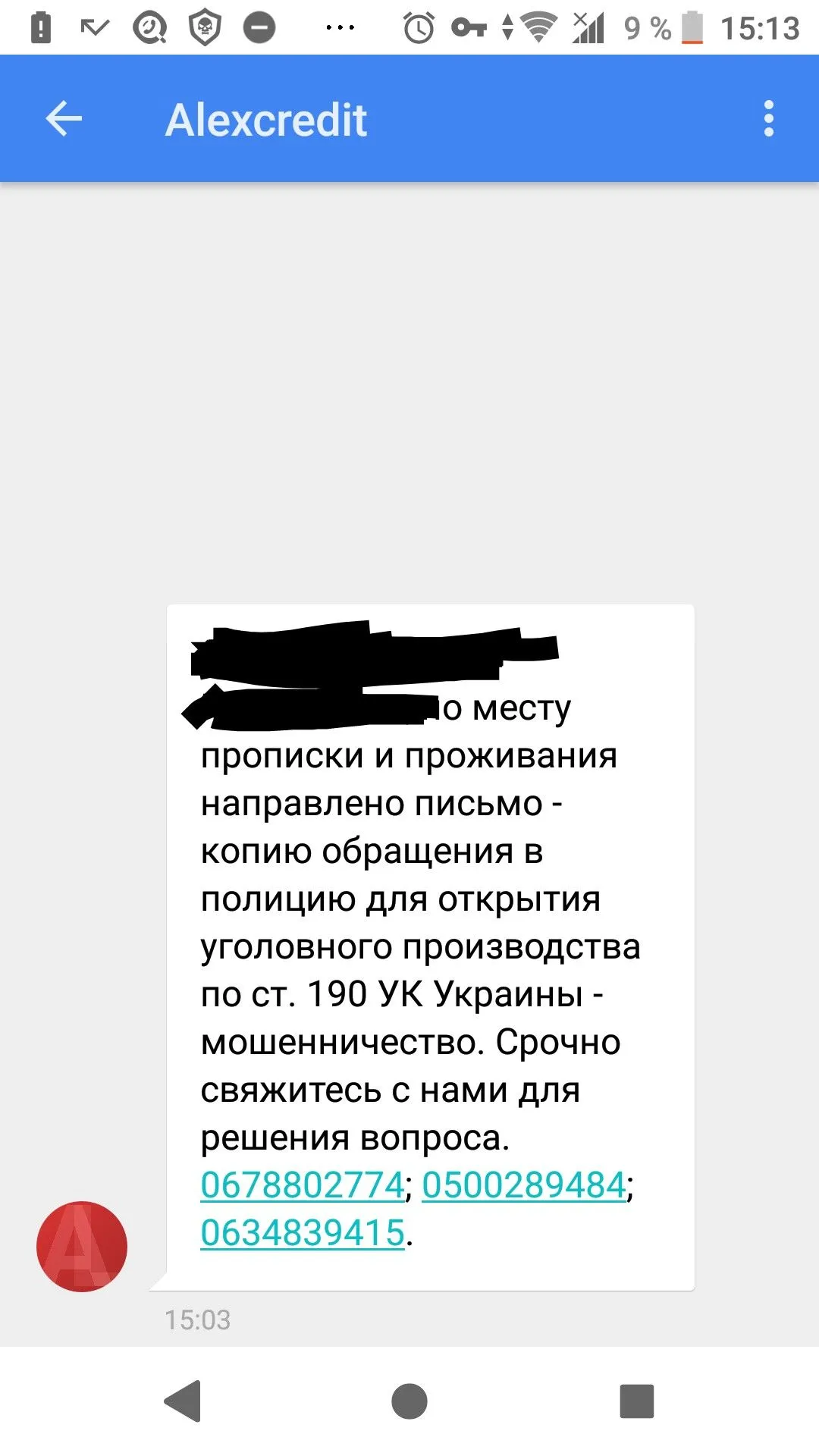 Вам срочно необходимо выйти с нами на связь для решения вопроса по поводу своей финансовой задолженности.В ином случае мы будем вынуждены передать Ваше дело в отдел по взысканию финансовой задолженности без возможности продления.