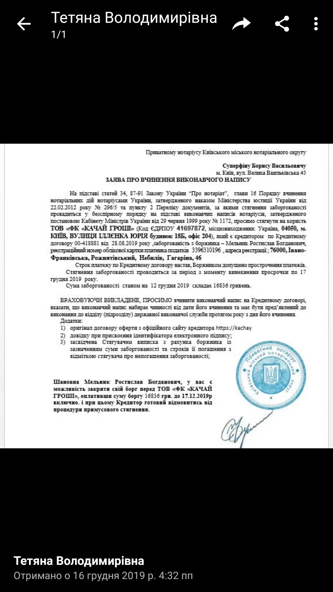 Всім доброго дня,ось таке прислали від качай гроші,як думаєте реально подали заяву?