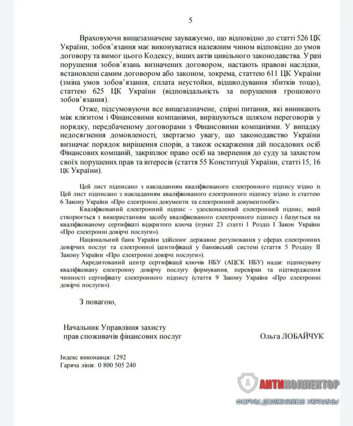 НБУ четко не ответил на те пункты, что я указывала. Я считаю данный ответ очень размытым, да и по телефону после получения этого письма признали, что юрист НБУ мои договора не читал, это стандартный ответ ( они же и говорили, что их юрист вычитывает договора)