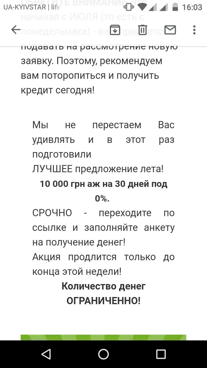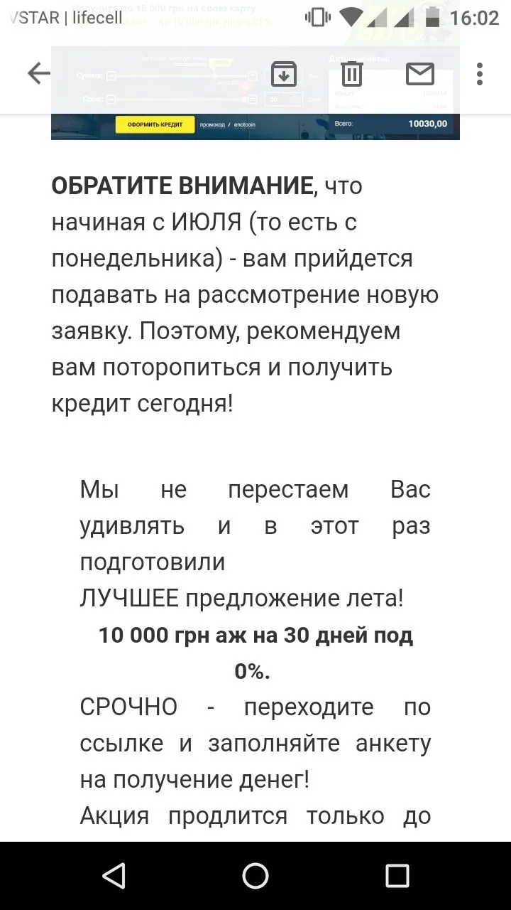 Манивео, письмо прислали, предлагают взять кредит на 10 000 по акции. При том что они мой кредит продали Талион и те с меня требуют 40 000 при теле 13 000 с двумя пролонгации, я просто чуть не вписалась от смеха, вот ид*оты
