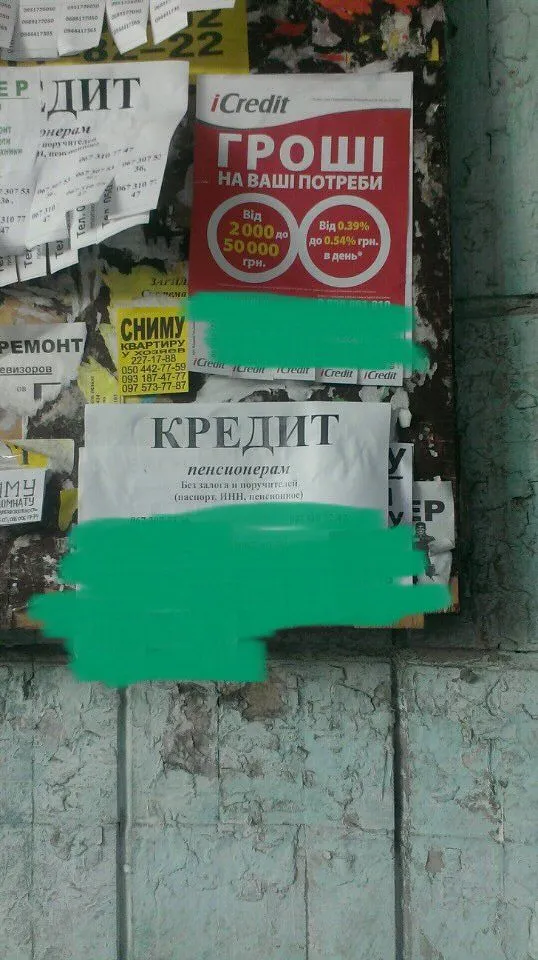 Мало того, что отделение I-credit В нашем доме, так еще и рекламу лепят, сцуки на каждом парадном. Но больше всего взбесило о кредите пенсионерам. Тут вообще один мат на языке ?????