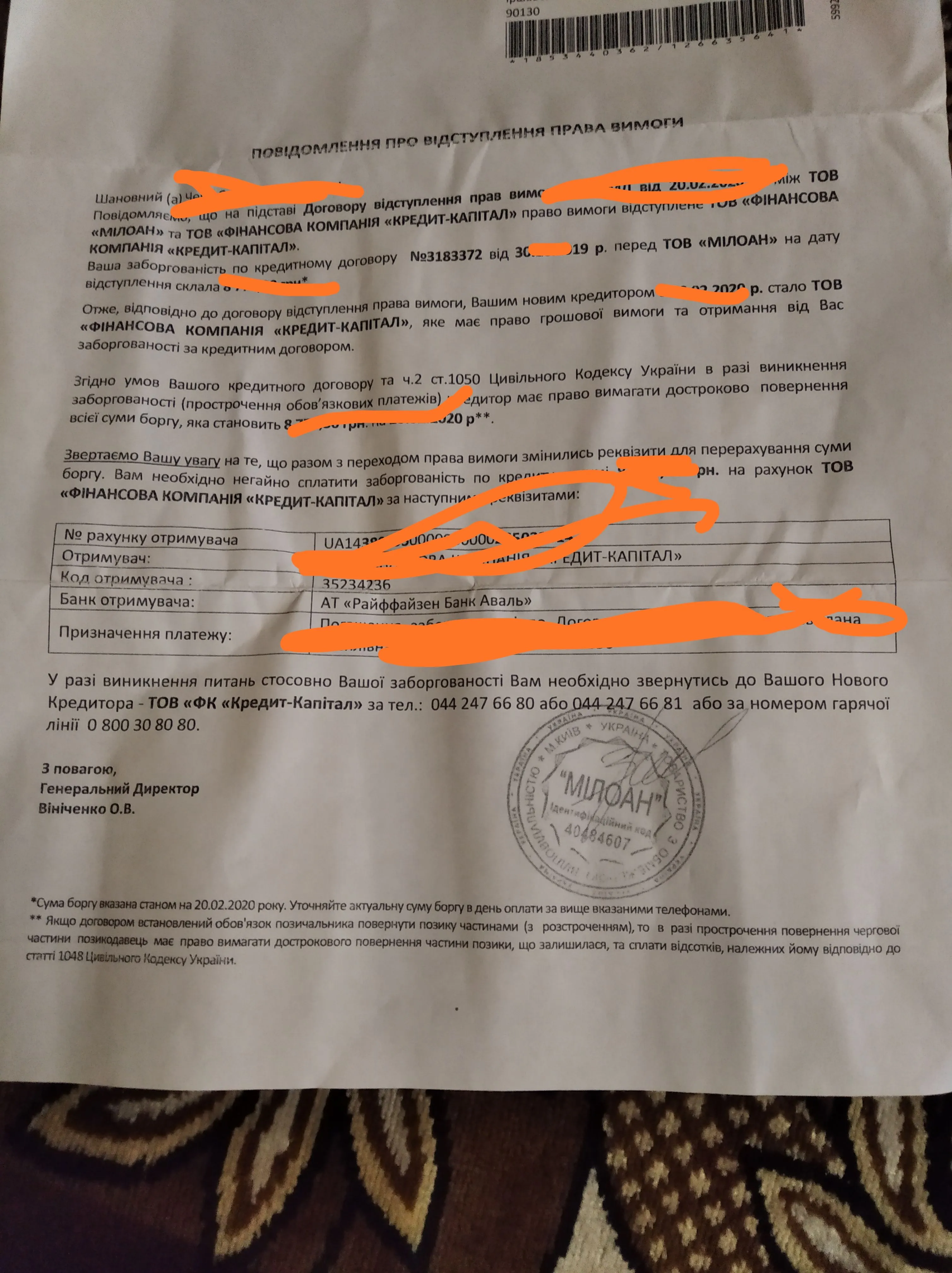 Меня продали уже 6 раз!!!!!!!!прошло больше года!!!!Право вимоги за Договором від року в розмірі 53918 грн. 72 коп. передано ТОВ «ФК «ПРЕМІУМ АКТИВ» (код ЄДРПОУ: 41797188