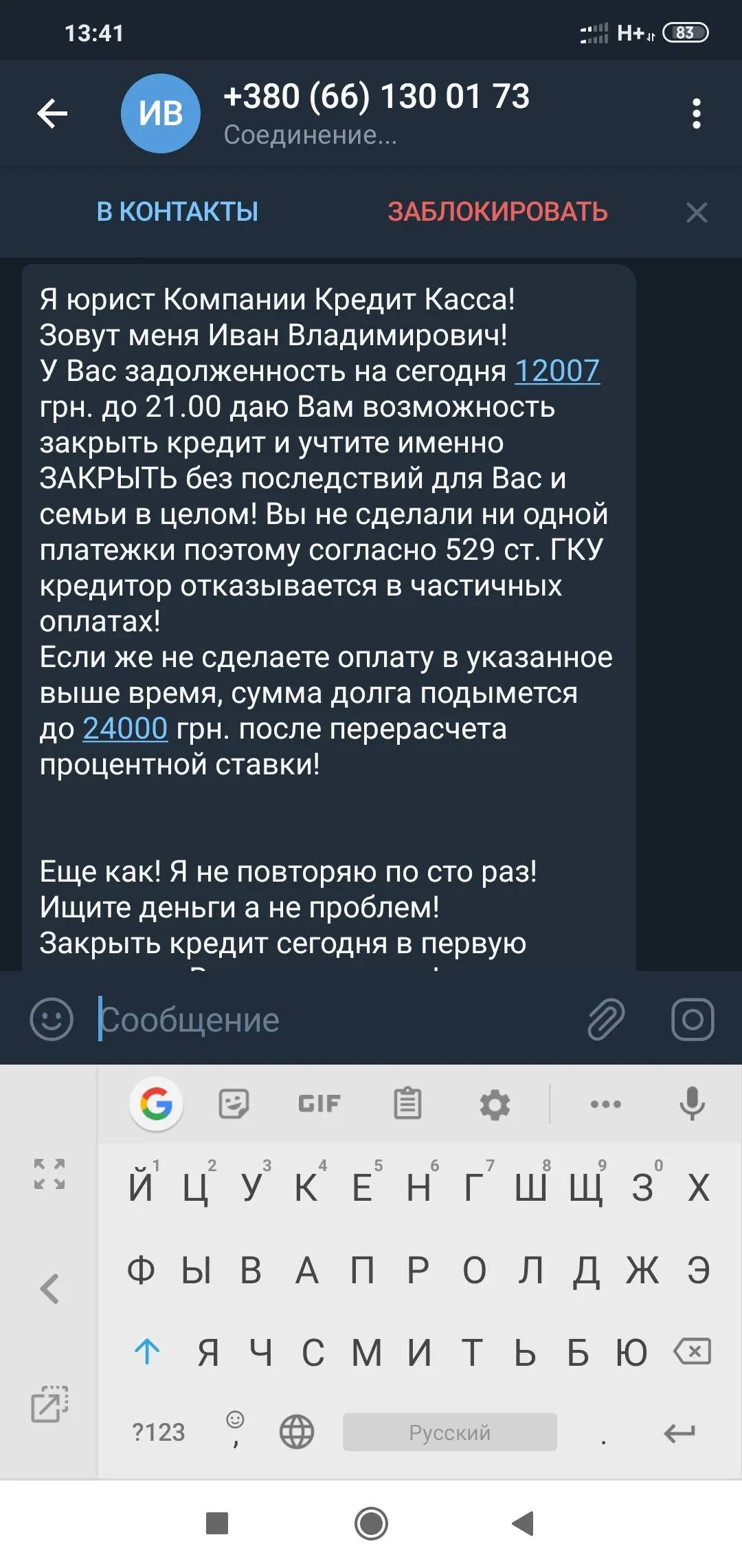 Idioto он просто и всё. Очередная подставка для гарнитуры нацарапала очередное шаблонное сообщение. В ЧС его и спите спокойно, ничего страшного оно не сделает.