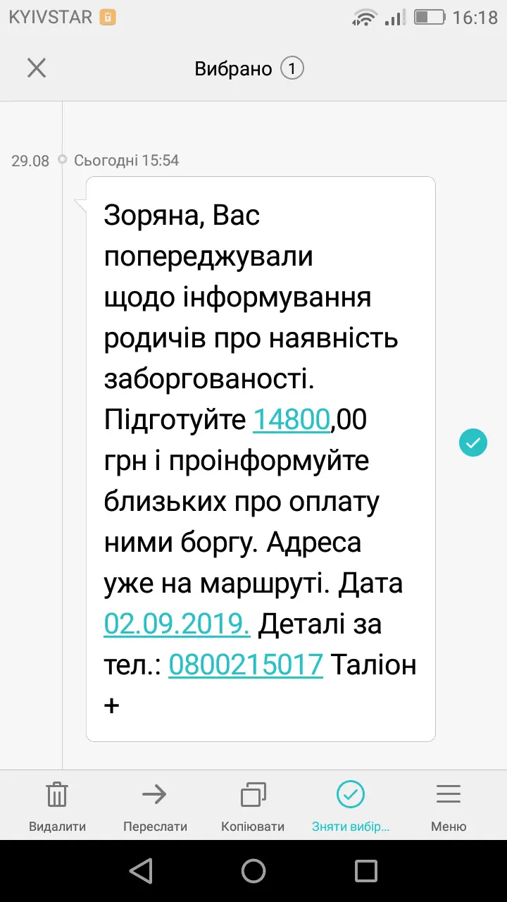 Допоможіть інформацією,я зіткнулась з компанією "Таліон+"що можна від них очікувати.Вони дзвонили до мене грубо говорили хамили погрожували, вимагали спочатку 41000грн через хвилину 51000 а сказали заплатити 25000грн я таких грошей немаю,готова заплатити тіло кредиту 12000грн.Дзвонили до рідних і сусідів.Сьогодні мала внести суму 25000грн,я її невнесла ,сказали готовитись, а до чого незнаю.Передзвонила до них почала погрожувати що подам заяву в поліцію за погрози і розповсюдження приватеої інформації , так він псіханув і вибив