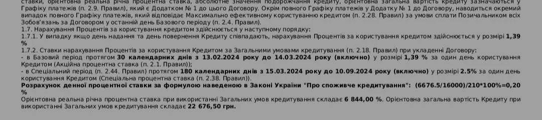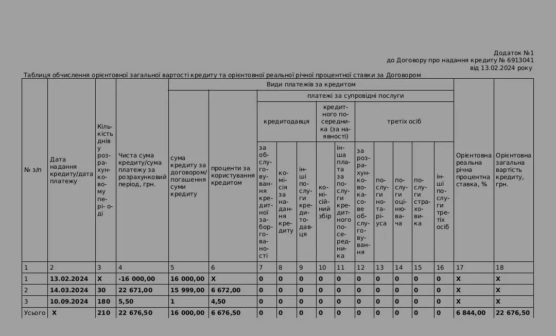 І ще один цікавий момент, кредит надано згідно договірну на 210 днів, а таблиця розрахунку лише на 1 місяць. Як вважаєте такий договір взагалі має якусь юридичну силу?