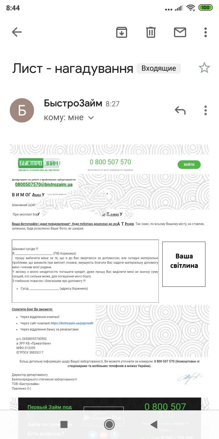 Сьогодні прийшло від Бистрозайм Допозовна вимога. Хто з таким стикався?