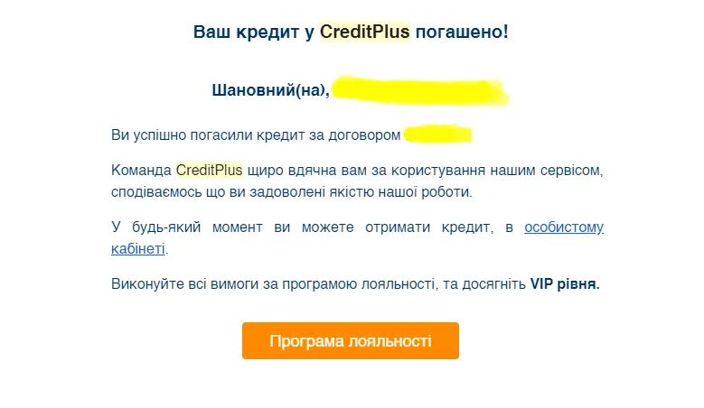 Ходив я спокійно з новою картою для виплат рівно 2 тижні, поки в один момент на рахунку не стало -15000грн і на ел.пошту прийшла якась малява, мол "Дякую, що погасили кредит. Ви нам більше нічого не винні. З любов'ю, Кредит Плюс."